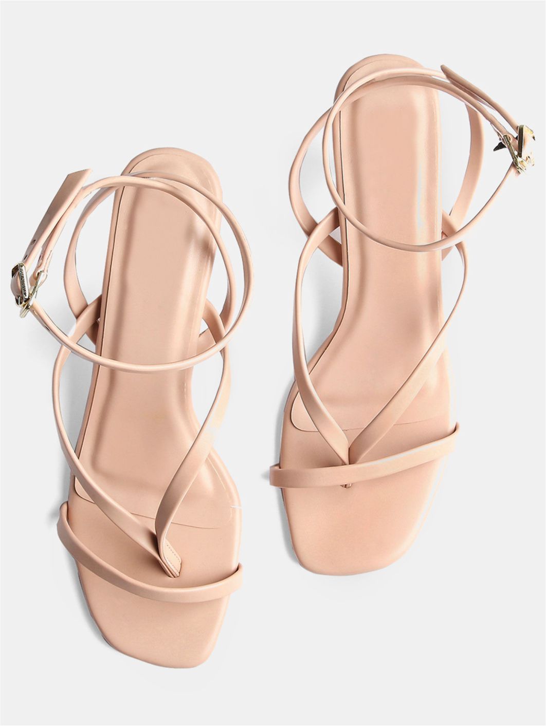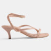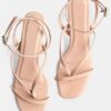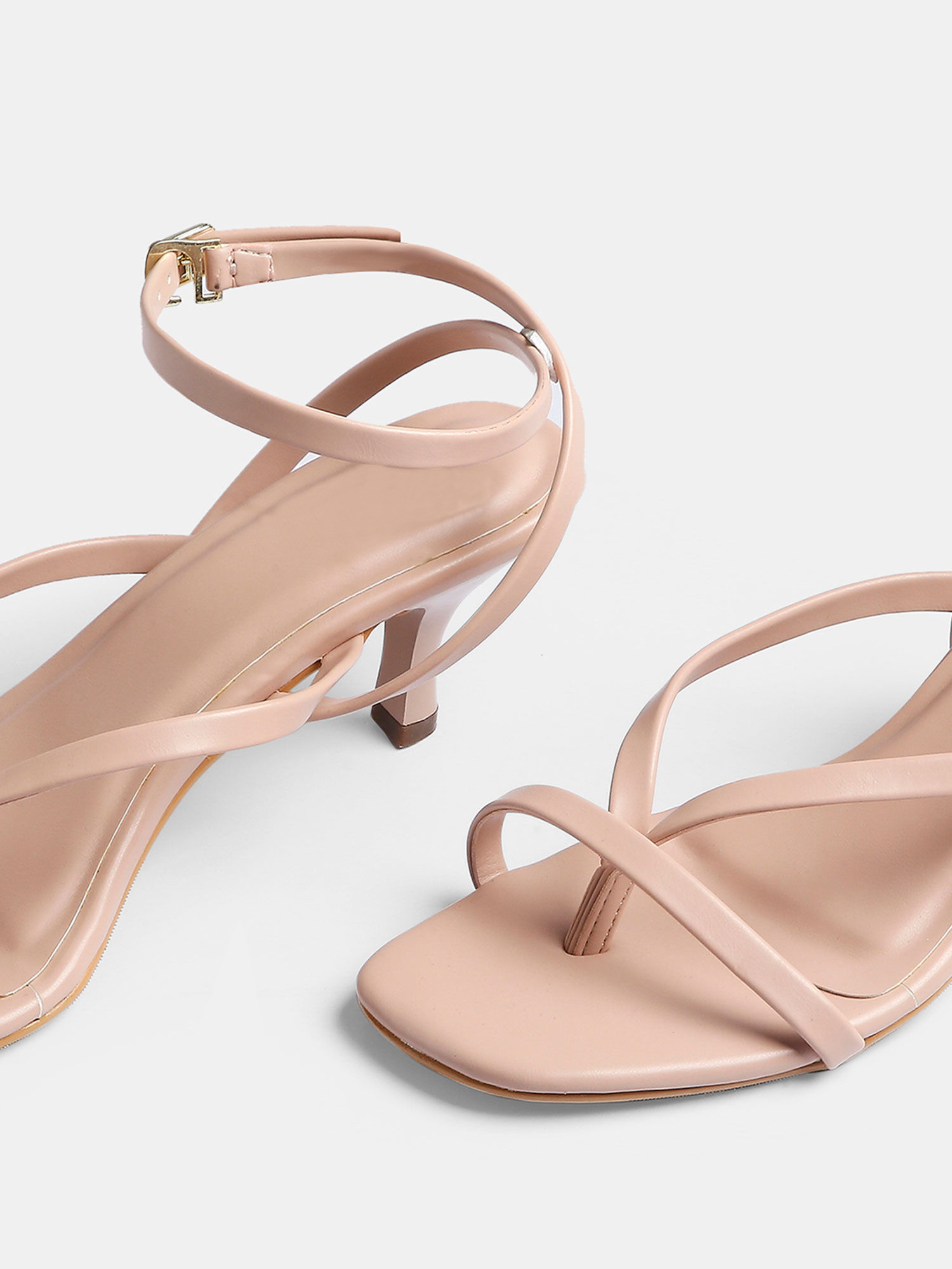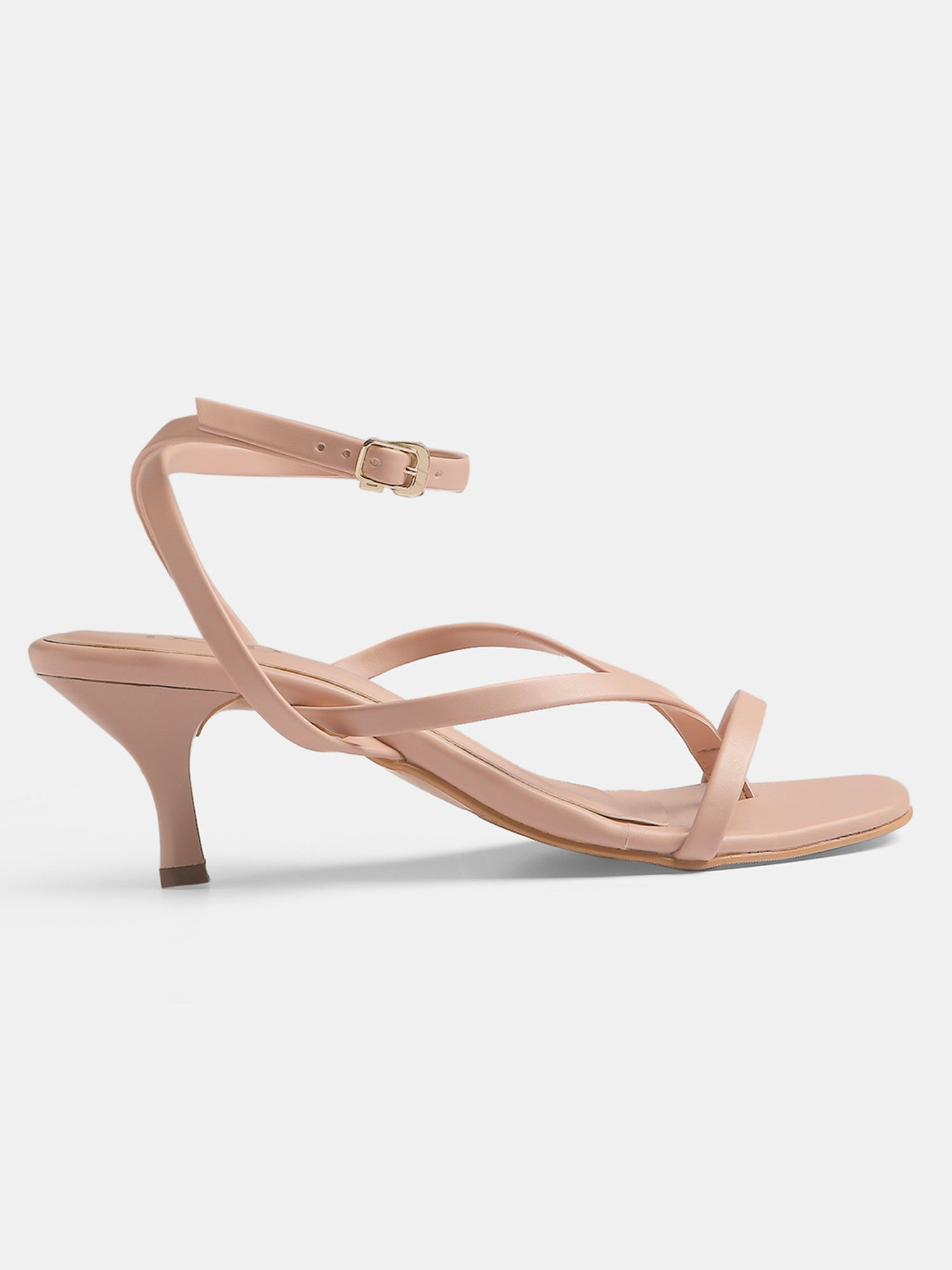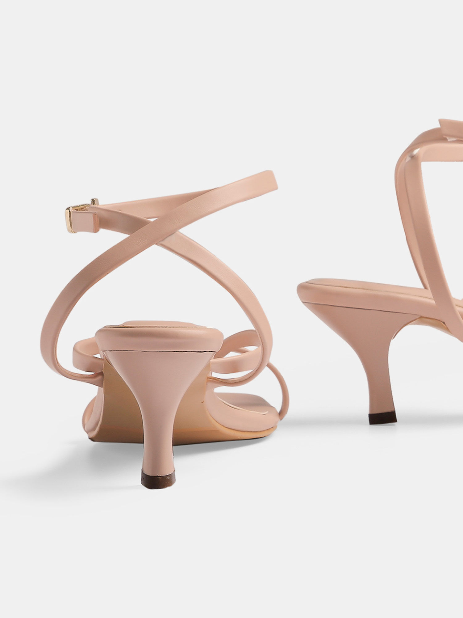 These kitten heels feature a strappy front and a square shaped toe design. Color- Pink. Material- Faux Leather PU; Sole Material – Resin Sheet. Closure- Buckle ankle strap. A versatile & flattering style to complement your everyday outfits.