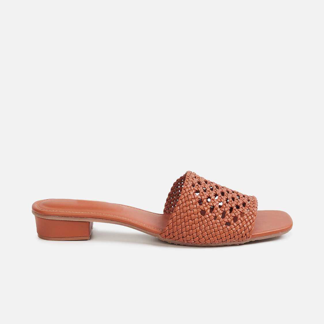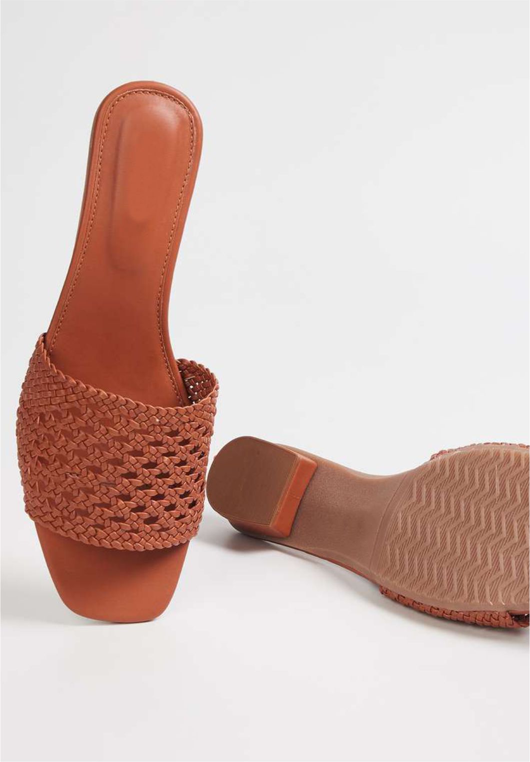 Give your look a classy twist with this pair of block heels detailed with open-toe detailing, textured surface and an easy slip-on fastening.