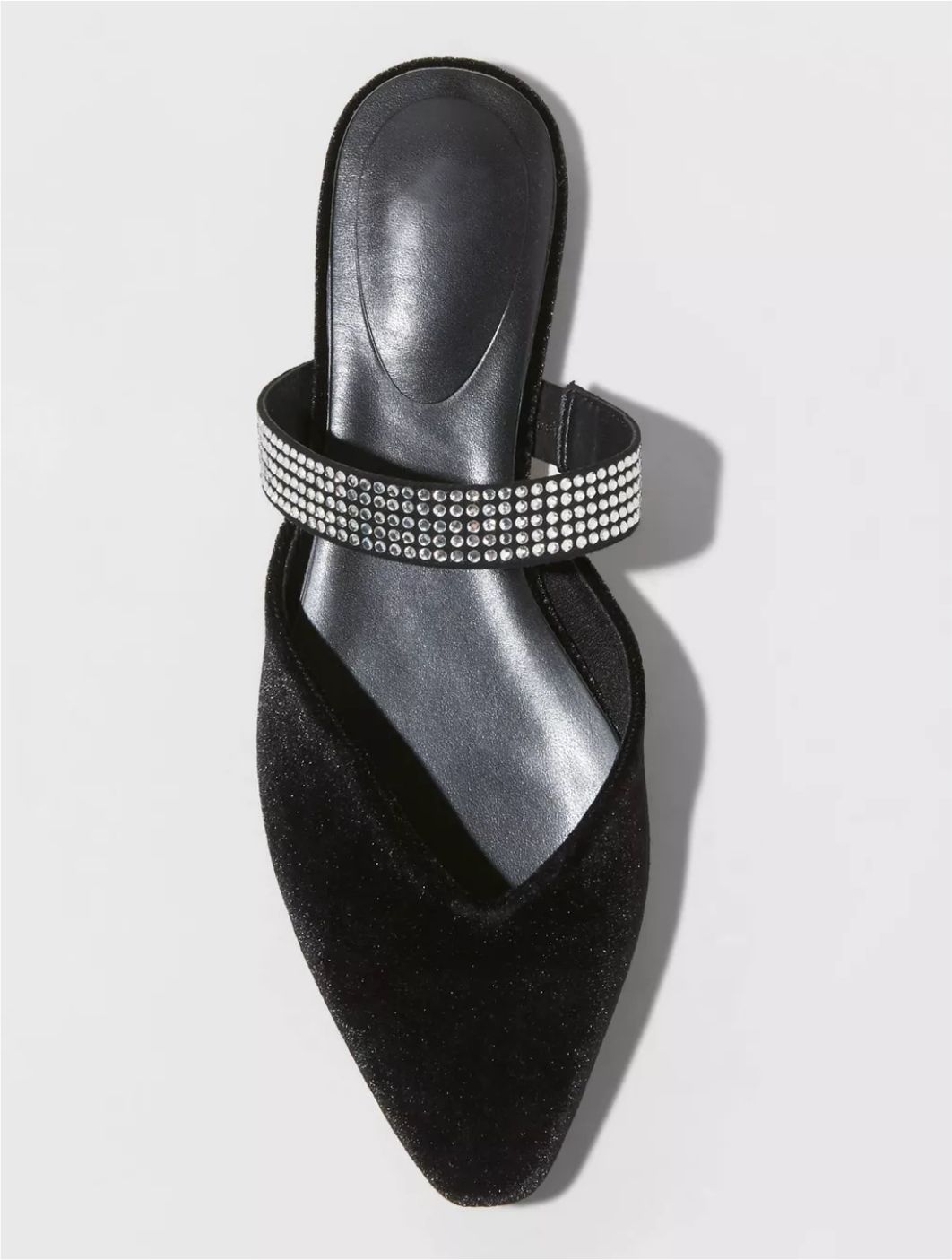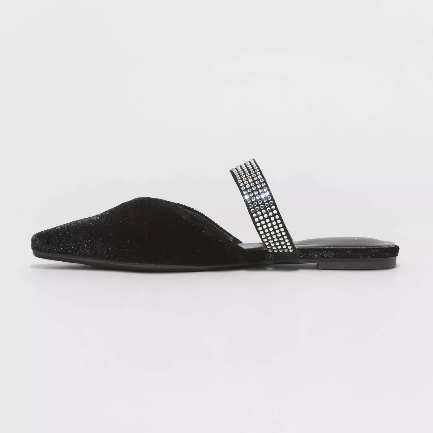 Upgrade your everyday footwear with these Mules. These women’s mules in a faux velvet finish make a fashionable pick for your footwear collection. They feature a chic pointed-toe design along with faux rhinestone-studded strap for added style. The flat heel along with their slip-on style make these embellished flats comfortable and easy to wear. Pair with jeans and a sweater, dresses and more.