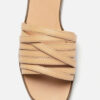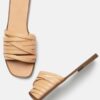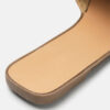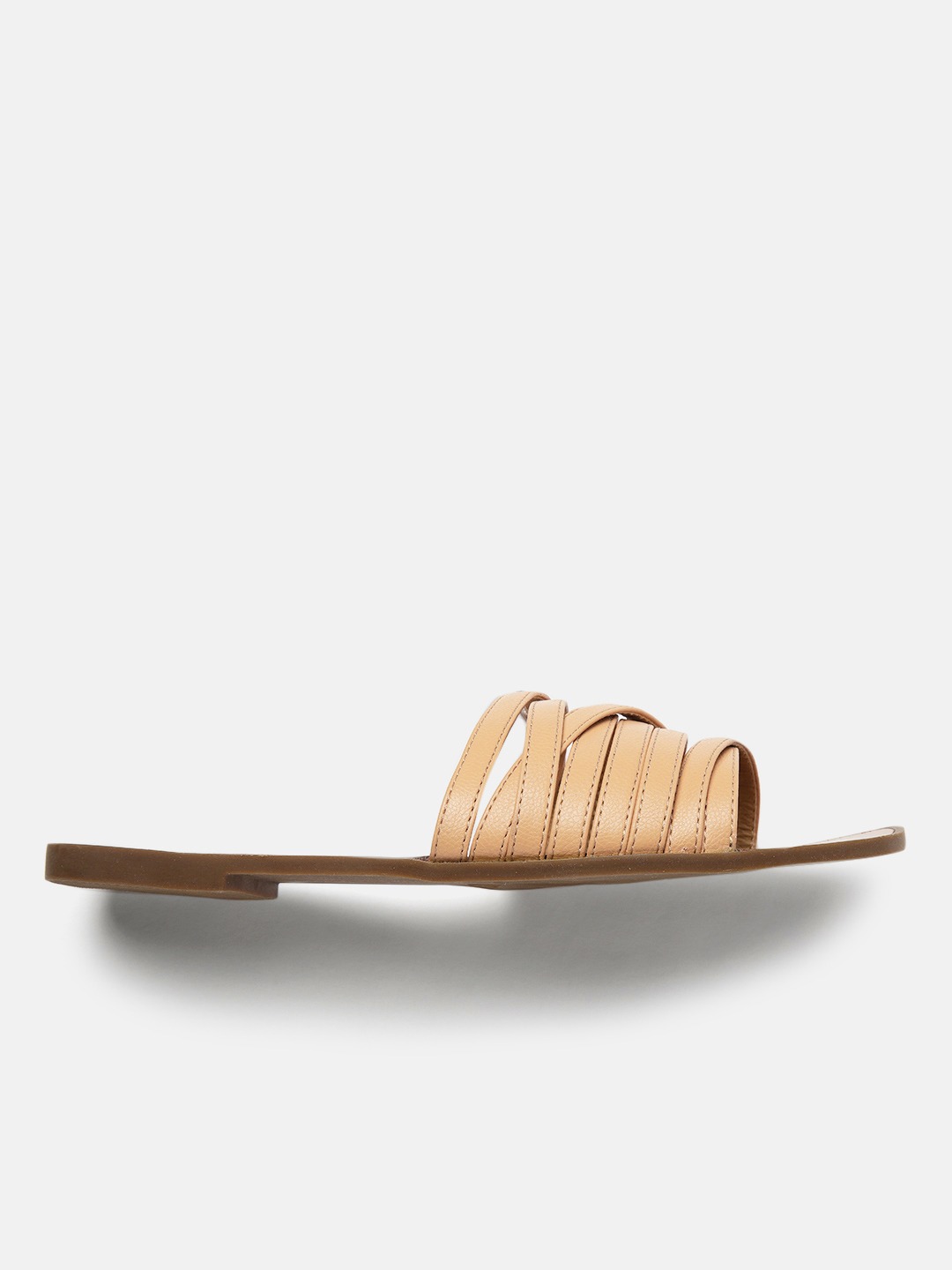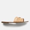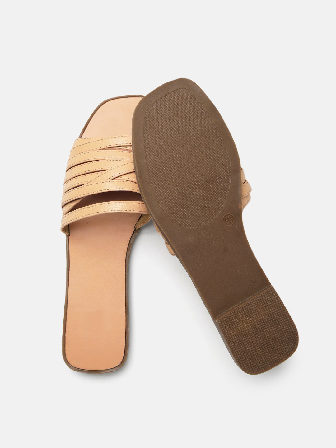 A pair of beige open-toed flats, has regular styling, no back strap detail