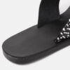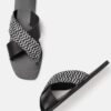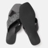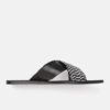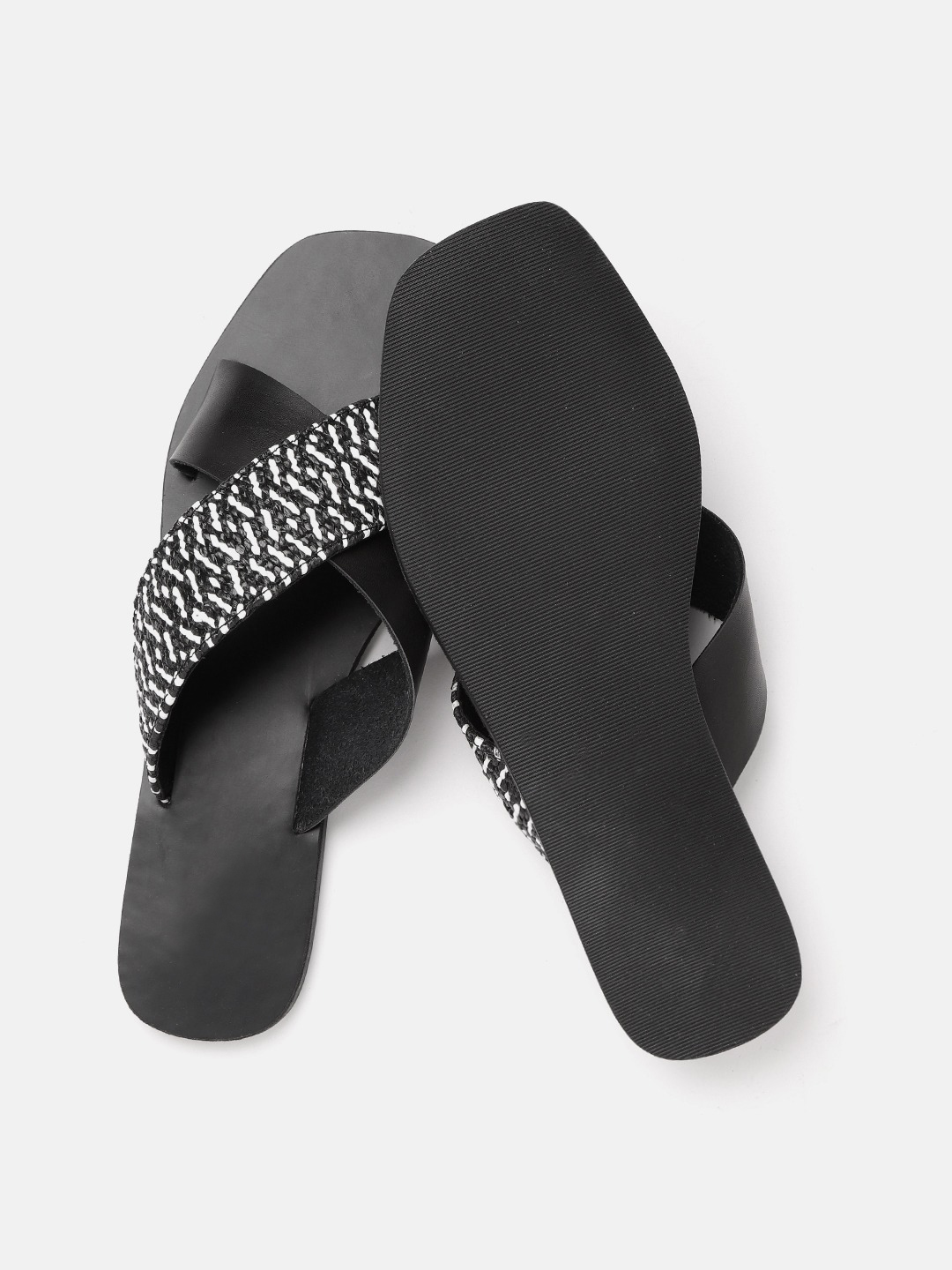 A pair of tan brown, off-white, and taupe handcrafted open-toed flats, has regular styling, no back strap detail